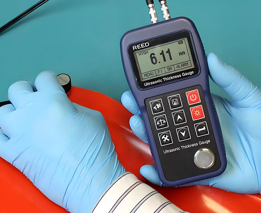 Ultrasonic Thickness Gauges: Essential for our coated rollers, this tool non-destructively verifies the exact thickness of steel tubes and the uniform application of our Polyurethane (PU) or rubber coatings.